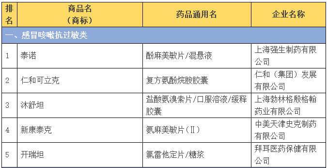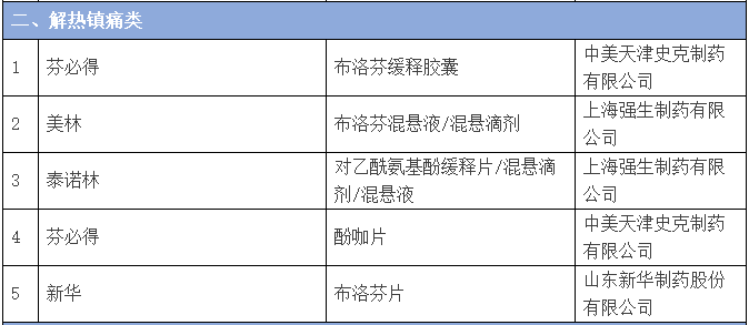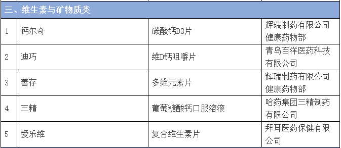 下面品种排名来自中国非处方药物协会的排名。