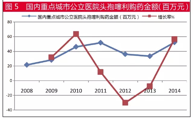 据CFDA南方医药经济研究所米内网数据库资料显示,2014年,国内重点城市公立医院头孢噻利购药金额为5222万元,同比上一年增长了56.58%,在恒医药的学术推广下,该品将成为后起之秀。
