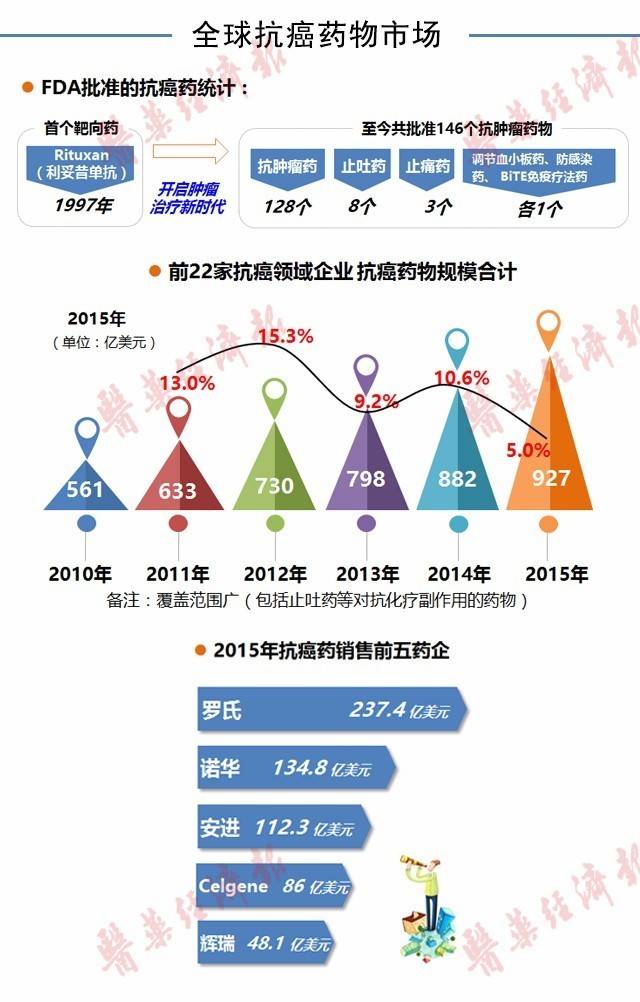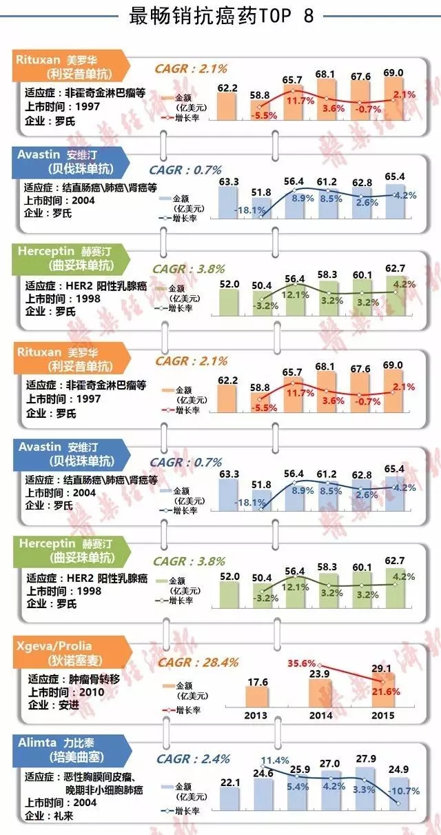 一图看透抗癌药物市场:前五药企有谁?8个最畅销产品销售走势如何?